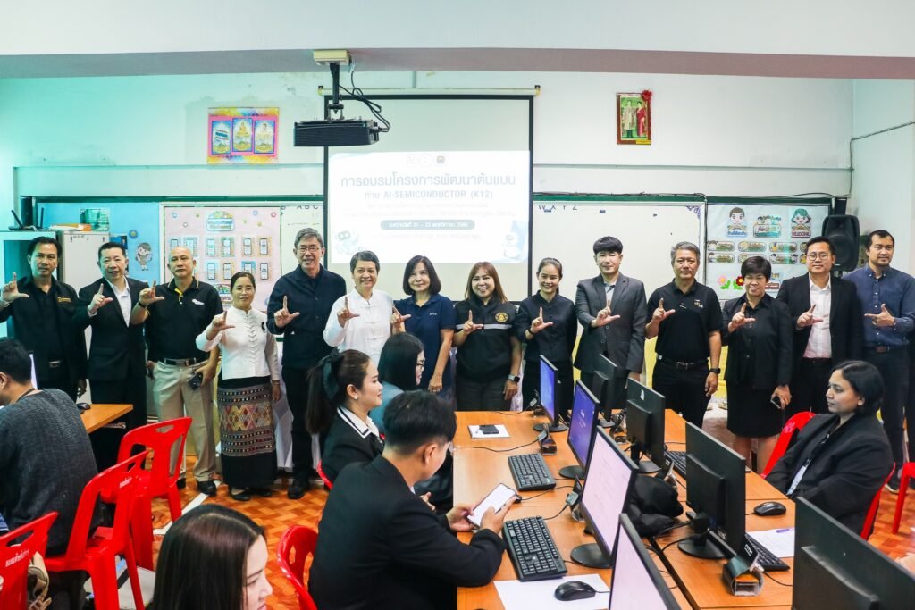 เมื่อเร็ว ๆ นี้ โรงเรียนเทศบาลประตูลี้ จังหวัดลำพูน ได้จัดโครงการ “ค่าย AI–Semiconductor (K12)” สำหรับนักเรียนระดับก่อนมหาวิทยาลัย เพื่อเปิดโอกาสให้เยาวชนไทยได้สัมผัสประสบการณ์การเรียนรู้ด้าน AI และเซมิคอนดักเตอร์ โดยมีความร่วมมือจาก NTP Semiconductor — บริษัทผู้ผลิตและจำหน่ายชิ้นส่วนอิเล็กทรอนิกส์และเซมิคอนดักเตอร์ภายในประเทศไทย 🎯 จุดประสงค์ของโครงการ ✅ เหตุผลที่เลือก NYCU NYCU เป็นสถาบันที่มีชื่อเสียงด้านงานวิจัยและการพัฒนาด้านเซมิคอนดักเตอร์และอิเล็กทรอนิกส์ (ผ่านหน่วยงานอย่าง Institute of Pioneer Semiconductor Innovation) ที่มีความเชี่ยวชาญทั้งด้านวัสดุ การออกแบบอุปกรณ์ และกระบวนการผลิตชิป รวมถึงการออกแบบ IC/SoC และระบบอิเล็กทรอนิกส์สมัยใหม่ 📅 การดำเนินการ โครงการอบรมจัดขึ้นที่โรงเรียนเทศบาลประตูลี้ โดยมี NTP Semiconductor เป็นหนึ่งในผู้ร่วมจัดหลักสูตร พร้อมพันธมิตรจากภาคอุตสาหกรรมอิเล็กทรอนิกส์ เพื่อให้การฝึกอบรมมีเนื้อหาครบ — ทั้งความรู้พื้นฐาน ทฤษฎี และกิจกรรมเชิงปฏิบัติการจริง โดยมีเป้าหมายให้เยาวชนได้เตรียมความพร้อมสำหรับเส้นทางในสายงานเทคโนโลยีและวิศวกรรมในอนาคต 💡 ความหมายและประโยชน์ต่อเยาวชนไทย